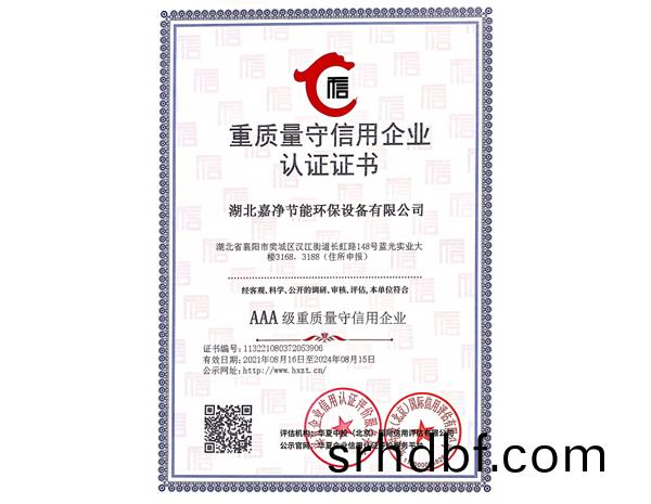AAA級重質(zhì)量(liang)守信(xin)用企業(yè)(ye)認(rèn)證(zheng)證(zheng)書(shu)